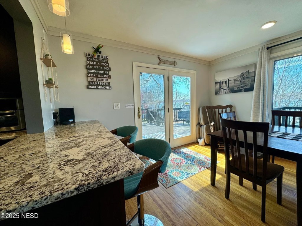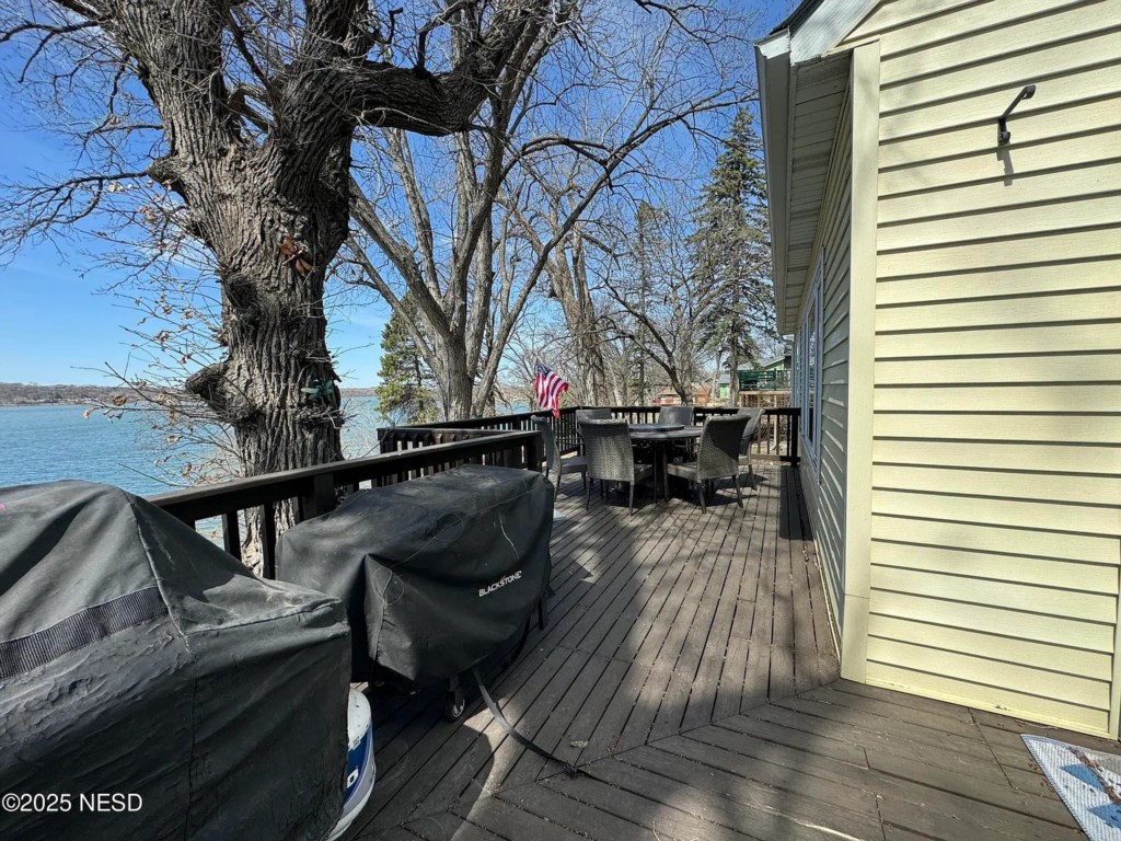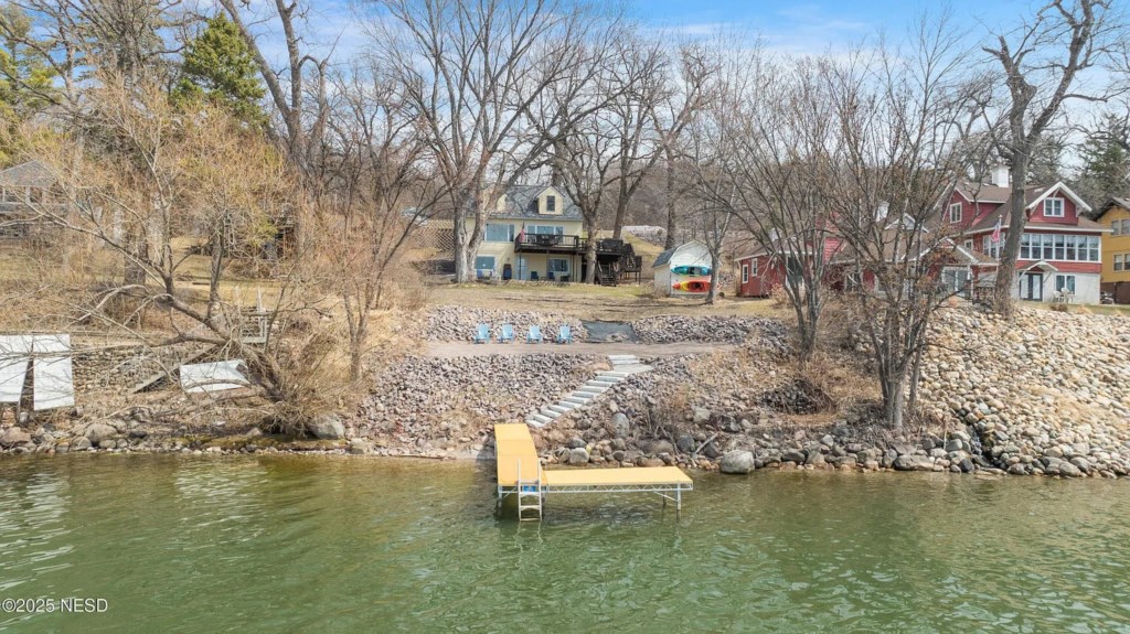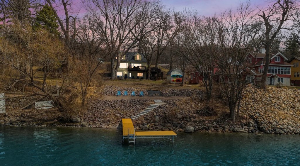 Welcome to Big Stone Lake Shore Cabin! This cozy craftsman cabin is on Big Stone Lake in Ortonville and boasts amazing views of the water throughout. A large wrap-around deck is stunning and will have you in awe of the glistening water. This home sleeps up to 8 people. There are some wonderful amenities, including an updated kitchen with a peninsula, an Indoor dining room for 8, also has a large outdoor dining space, a water mat to keep the kids busy for hours, 2 kayaks, a grill and a Blackstone. 2 queen beds, an open staircase up to 4 full beds, a trundle and a hide abed couch on the lower level. This cabin has 3 levels and has 2100 sq ft of space. All of the essentials and amenities are provided in this cabin. Washer/dryer, hair dryer, crock pot, coffeemaker. The water is just steps away from the cabin. There is a dock for guests use, tying your boat to it is an option just please use bumpers to prevent damage. Just down the road is Lakewood Supper Club, the Ortonville golf course and Clubhouse, as well as Big Stone State Park. Bring your boat, bring your family and friends. Come make some memories in this cozy place! Pets are allowed with a pet fee. Book directly with Sota to save.